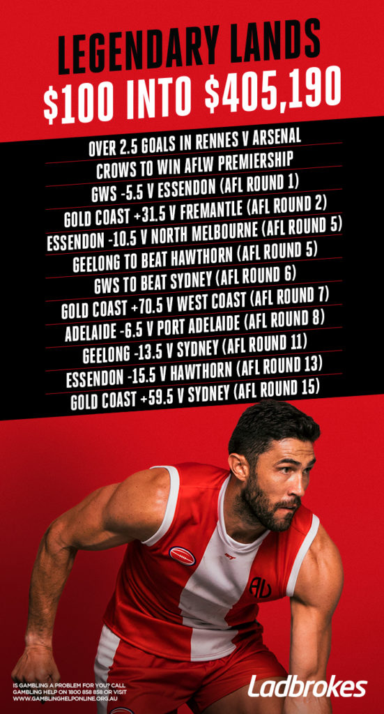 A punter with Ladbrokes Australia has landed one of the biggest multi bets we have ever seen on the weekend turning $100 into more than $405,000.
