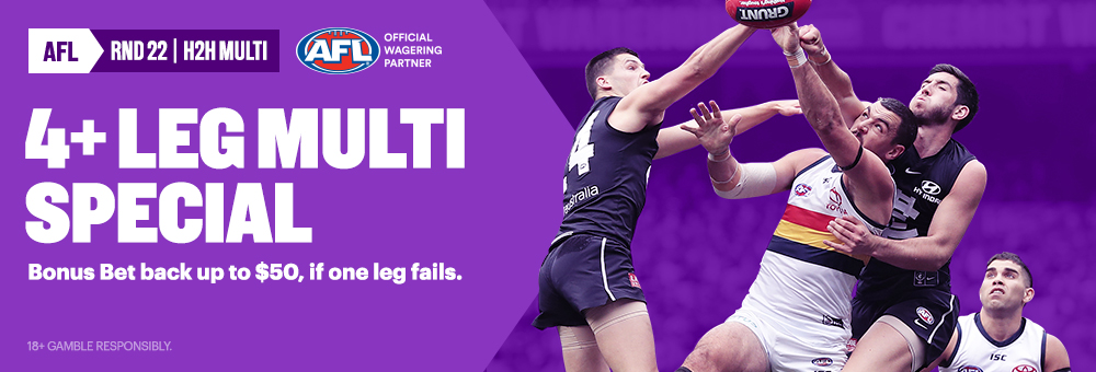 Applies to your first 4+ Leg Head to Head Multi on Round 21 AFL matches only.