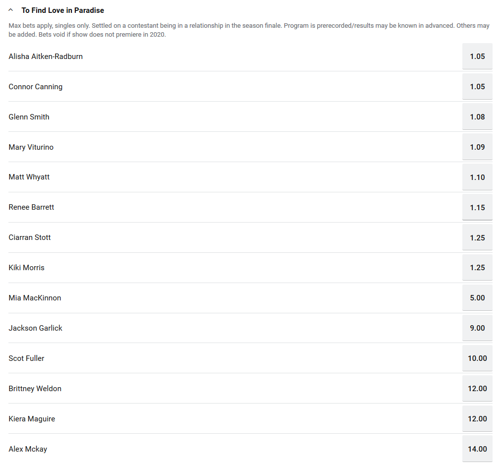 Bachelor in Paradise Australia has official launched in Australia with new contestants and lots of excitement for new and old Bachelor in Paradise fans. We take a look at the odds for each of the contestants in the 2020 Bachelor in Paradise Australia and we give our tips and bets for who we think will find love in this years series.
