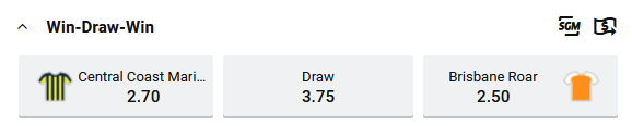 This is an opportunity the Roar must take advantage of if they are a genuine post-season contender. But the Mariners’ home form should point punters in the direction of a draw.