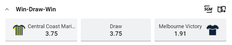 Correct Score: Melbourne Victory 2 – 1 at $8.00