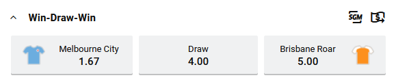 Correct Score: Melbourne City 2 – 0 at $8.00