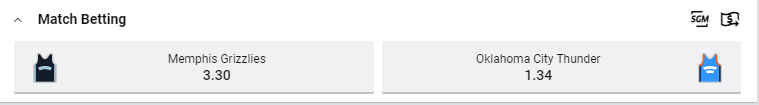 Tip: Oklahoma City Thunder at $1.34