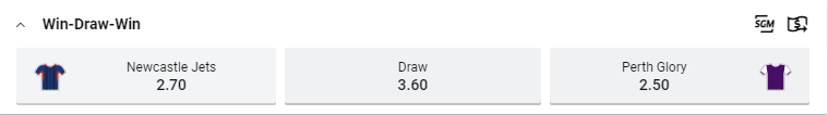 In a tipping competition I would probably take the Glory outright but from a betting perspective there’s just too many variables in play for a good option, so I’ll steer clear of this one.