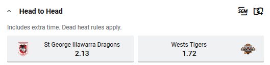We take a look at Sunday afternoons (1/9/2019) NRL Week 24 match which is between the St George-Illawarra Dragons and the Wests Tigers. The Dragons will host the Tigers but are the outsiders in the betting.