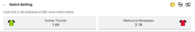 Tip: Sydney Thunder $1.69