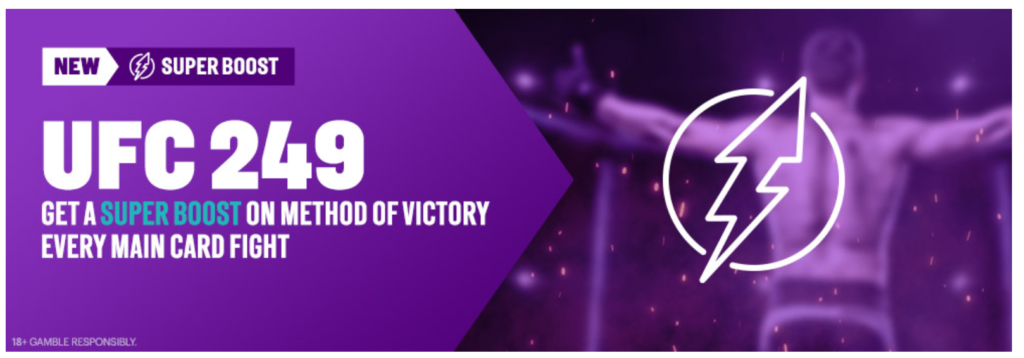 Enjoy Super Boosts on all UFC 249 Main Card fights this Sunday.