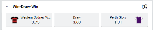 It would be good for Perth to be at slightly longer odds here but it shouldn’t be too surprising that they are under even money, the Glory are the better side and should win this one.